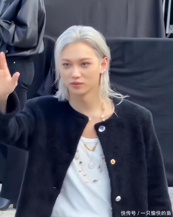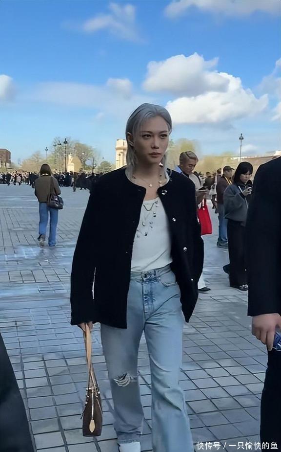 当然了,这场大秀里也不是所有明星都翻车了,李龙馥就成了最大的惊喜,跟开了挂似的。他也是LV的全球代言人,这都是第十次受邀参加活动了,经验挺足。他那天弄了个银灰色的狼尾发型,穿了件黑色的粗花呢外套配牛仔裤,穿出了自己独有的个性,看着就很舒服。